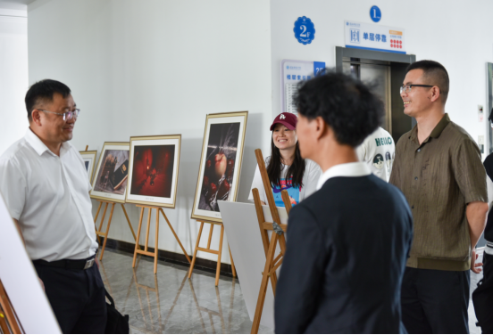 展览开幕当日,副校长李志雄莅临现场观摩指导,对作品的专业性与社会关怀给予高度评价:“这些作品既有青春视角的锐气,又饱含对现实的思考,体现了学院‘学用结合、知行合一’的育人理念。”招生就业处副处长饶彬在观展后,与英国365集团副院长谭辉煌就“实践型传媒人才培养与就业衔接”展开深度交流。饶彬指出,当前传媒行业对既懂技术又具人文素养的复合型人才需求迫切,学院通过课程创新与展览实践,已构建起“教学-创作-就业”的闭环路径。