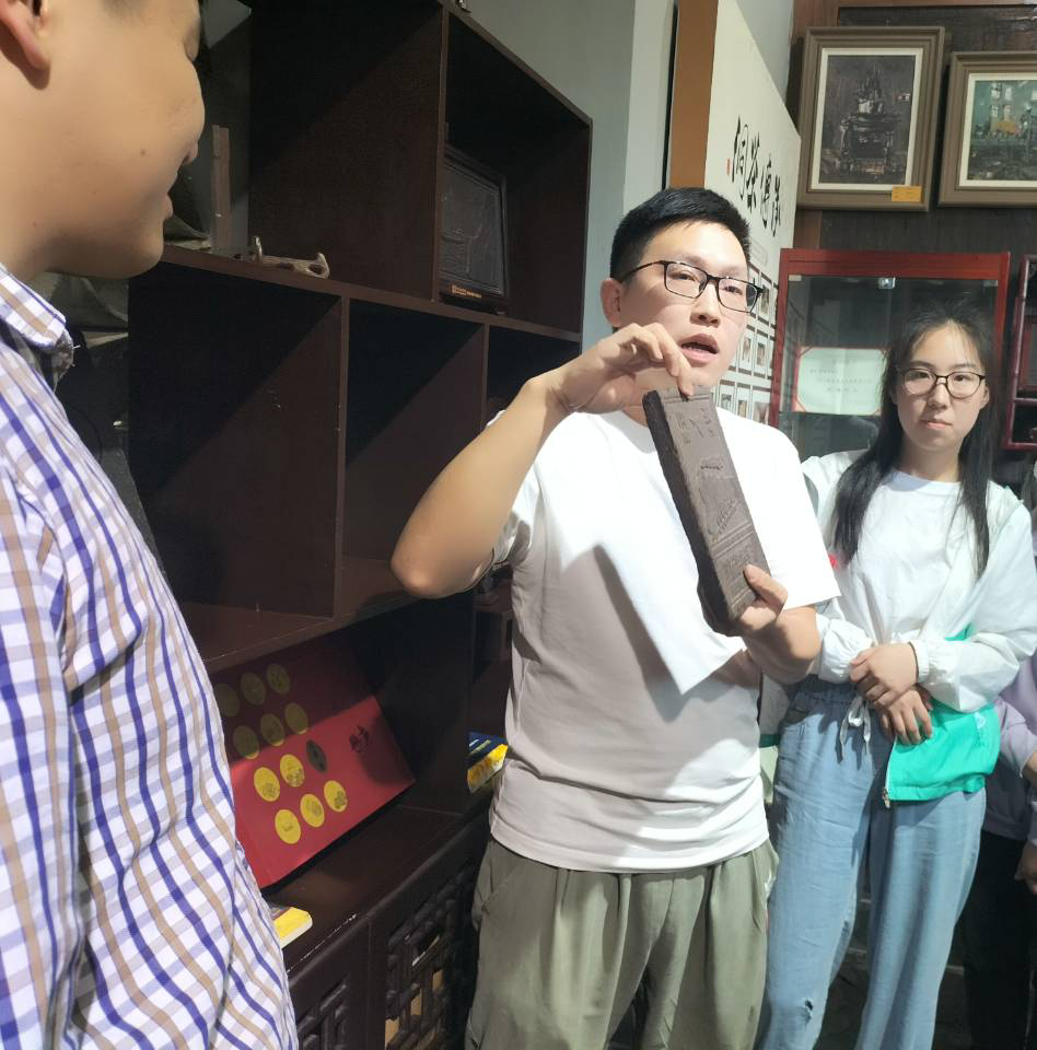 进入研究基地,中心赖建东老师向同学们讲述了不同时期鄂南地区文化的显著特色。鄂南文化历史悠久,文明遗迹最早可以追述到旧石器时期,在这里曾出土了熊猫头盖骨。同时这里也为古瑶文化、三国赤壁文化、北伐战争和抗日战争的研究提供重要历史资料。此外,赖老师还提到鄂南地区的中药、桥梁、古居,木雕以及茶文化。羊楼洞镇是“砖茶之乡”,青砖茶和米砖茶举世闻名,畅销海内外,在东西方交流和巩固多民族统一方面都发挥了重要的桥梁作用。最后大家自由参观了一些其他的富有民族民间特色生产生活用品,古朴的建筑和独特的民俗文化,让大家领略到了鄂南文化的独特魅力。