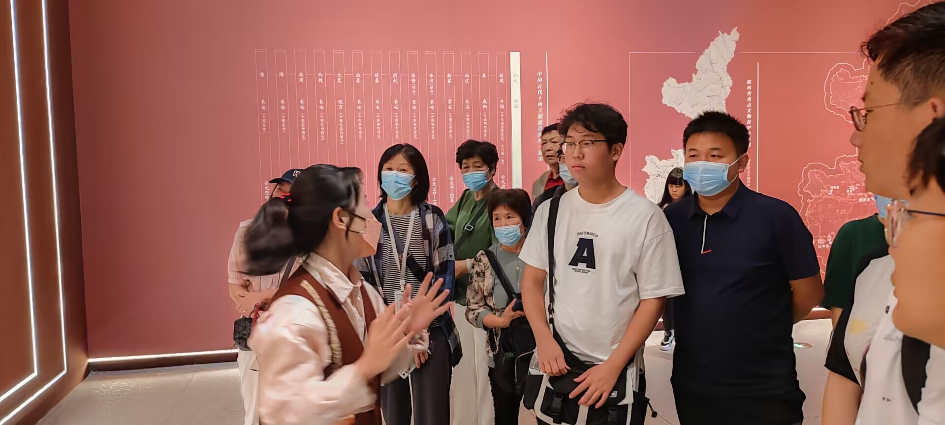 在讲解员的带领下,同学们首先参观了博物馆一层的“陕西周秦汉唐文物精华展”