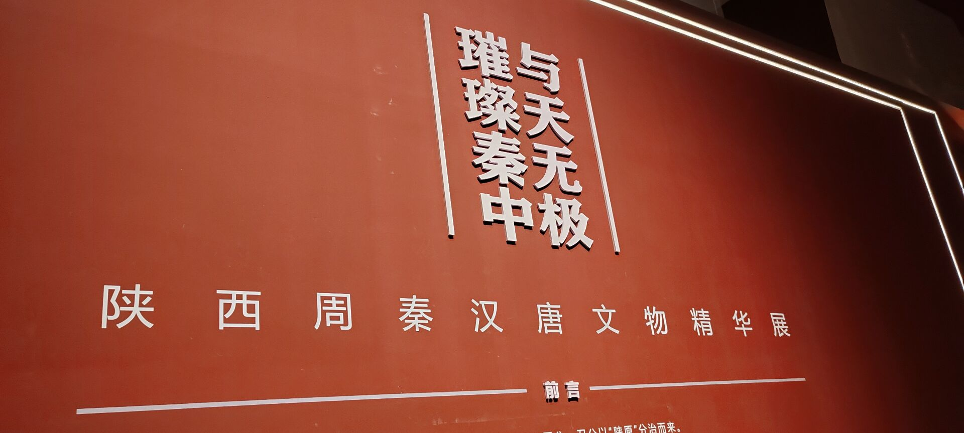 本次展览汇集陕西历史博物馆、咸阳博物院、汉景帝阳陵博物院、法门寺博物馆、乾陵博物馆、西安市长安博物馆等多家单位的120组陕西古代文物精品。以时间为脉络,以周秦汉唐文化为主要轴线,为我们揭开陕西地区一页页光耀中华历史的璀璨篇章,展示周秦汉唐四朝在文明发展进程中所承载的思想精华和文化风采,彰显出华夏民族崇德尚礼、奋发有为、兼收并蓄的民族精神与文化自信,集中展现了中华民族历史上的辉煌时代。