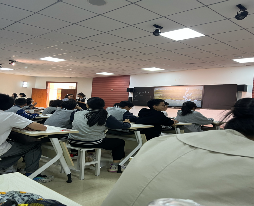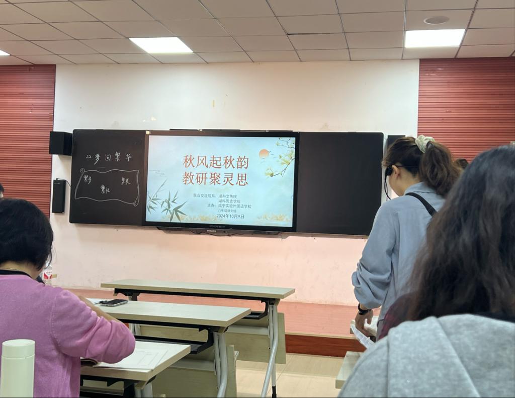 秋高气爽时,恰是学问长。为更好巩固我院师范生的专业素质,提升学生专业素养,进一步深化我校及我院与咸宁周边校园的友好合作,作为2022级汉语言文学专业教育见习系列活动之一,2024年10月9日下午,由副院长谭辉煌、汉语言文学张磊博士、高丽博士带队前往咸宁实验外国语学校参与展示课相关见习活动。咸宁市实验外国语学校胡辉祥副校长、八年级语文组全体老师出席本次活动。本次活动由咸宁市实验外国语学校优秀语文老师孟可老师为同学们带来课堂展示。