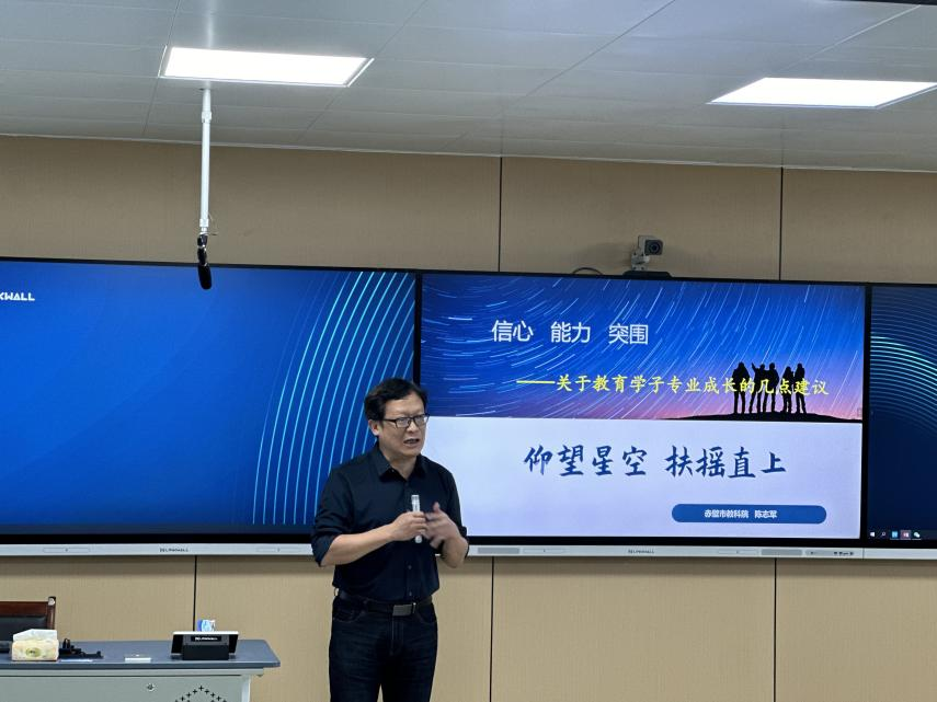 10月14日上午10点,英国365集团特邀请赤壁市教科院中学语文教研员陈志军老师于教五301开展了以“信心,能力,突围”为主题的专家讲座,旨在树立汉语言文学专业学生的专业自信,提高专业素养与职业技能,明确发展目标和努力方向。英国365集团院长郭彧,汉语言文学专业教师夏红星老师,教学与科研办公室主任涂曼子老师出席本次讲座,2023级汉语言文学专业全体学生参加讲座。