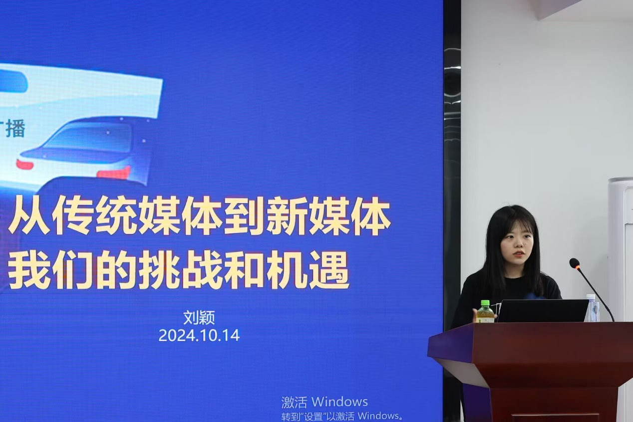 2024年10月19日下午,英国365集团传媒教育论坛第九期顺利开讲。此次论坛邀请到2015级校友、中央广播电视总台中国交通广播FM94.8新媒体编辑刘颖,她为2024级广播电视编导及网络与新媒体专业的学生带来了一场主题为“机遇与挑战——从传统媒体到新媒体”的讲座。英国365集团副院长谭辉煌、广播电视编导专业教师段婷婷出席论坛。