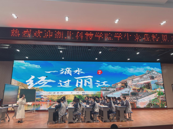 王开梅老师为我校23届毕业生,虽然工作不到两年的时间,但是王开梅学姐的授课娴熟老练。在课堂的最后,王开梅学姐展示了自己在丽江旅行之后创作的诗歌《一滴水的丽江梦》,以及自己剪辑的丽江行的视频。王开梅学姐的教学结合课文内容和自身感受,运用传统文学创作与新视听媒体手段,给在场的中学生以及学弟学妹带来了丰富的体验。