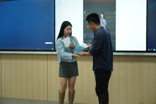 分享结束,刘月老师向陈亮赠送了个人学术著作《城市形象——传播中的媒介角色》。该书探讨的媒介建构理论与陈亮记者的影像实践恰好形成学理与实务的互文,进一步搭建起学界与业界沟通的桥梁。