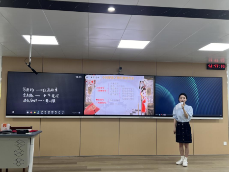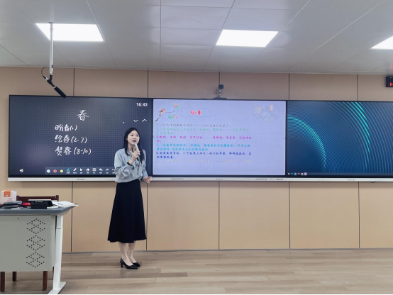 随后,22级5名同学带来示范课程。有的通过角色扮演还原课文场景,课堂氛围活泼生动;有的以琵琶弹奏《春江花月夜》开篇,将艺术与文学融合,新颖的导入方式令在场师生耳目一新。学姐们的展示不仅体现了成熟的教学设计能力,更传递了教学创新的多元可能。