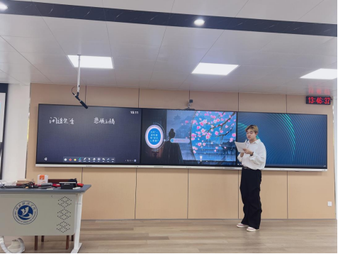 活动伊始,24级的5名师范生依次登台展示。其中余国荣同学讲授《诗经·无衣》时自信从容,结合历史背景解析诗歌内涵,积极与同学互动,并设计课后作业深化知识理解;邱梓月同学以《林黛玉进贾府》为课例,借王熙凤“未见其人,先闻其声”的影视片段切入,围绕人物描写技法展开教学,通过互动问答与细节剖析,将《红楼梦》的文学精妙娓娓道来。同学们虽初登讲台,却以扎实的文本功底与流畅的教学表达,展现出未来教师的潜力。