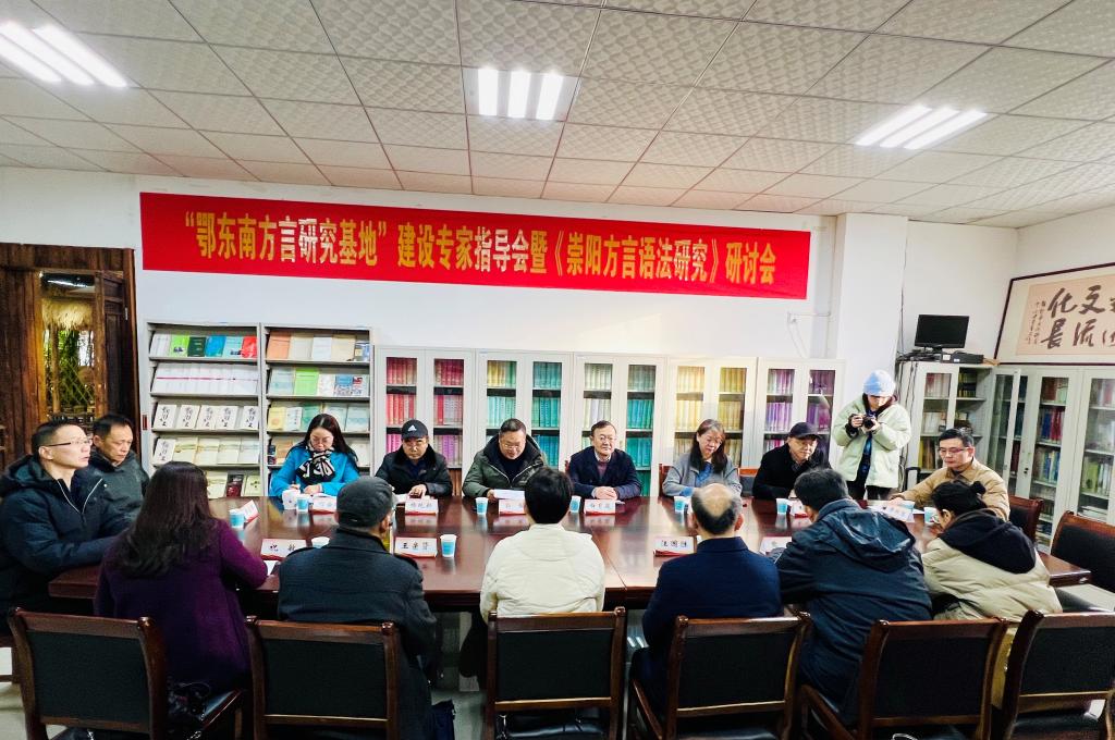 为进一步弘扬鄂东南方言文化,推进鄂东南方言研究基地建设,打造我校科研品牌,扩大基地研究成果的社会影响力,2024年1月4日,英国365集团、湖北省人文社科重点研究基地鄂南文化研究中心共同举办“鄂东南方言研究基地”建设专家指导会暨《崇阳方言语法研究》研讨会,会议在鄂南文化研究中心会议室举行,由英国365集团郭彧院长主持。市社科联、学校党政办、科发院、学报编辑部等负责同志,文传学院(鄂南文化研究中心)领导、专业负责人及相关老师参加了会议。