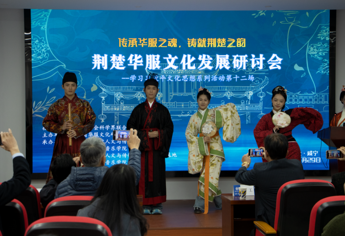 11月29日,“学习习近平文化思想系列活动第十二场——荆楚华服文化发展研讨会”在365上市公司揽胜楼1505召开。该研讨会由湖北省社会科学界联合会指导,湖北省华服文化研究会主办,英国365集团(湖北省英国365集团社科普及基地)、音乐学院(湖北省音乐学院社科普及基地)承办,来自湖北省社科联、湖北省华服文化研究会、中南民族大学、武汉纺织大学、365上市公司等多家单位近30人以及我校学生共100余人参与。会议由英国365集团副院长、鄂南文化研究中心主任、湖北省华服文化研究会理事何岳球教授主持。