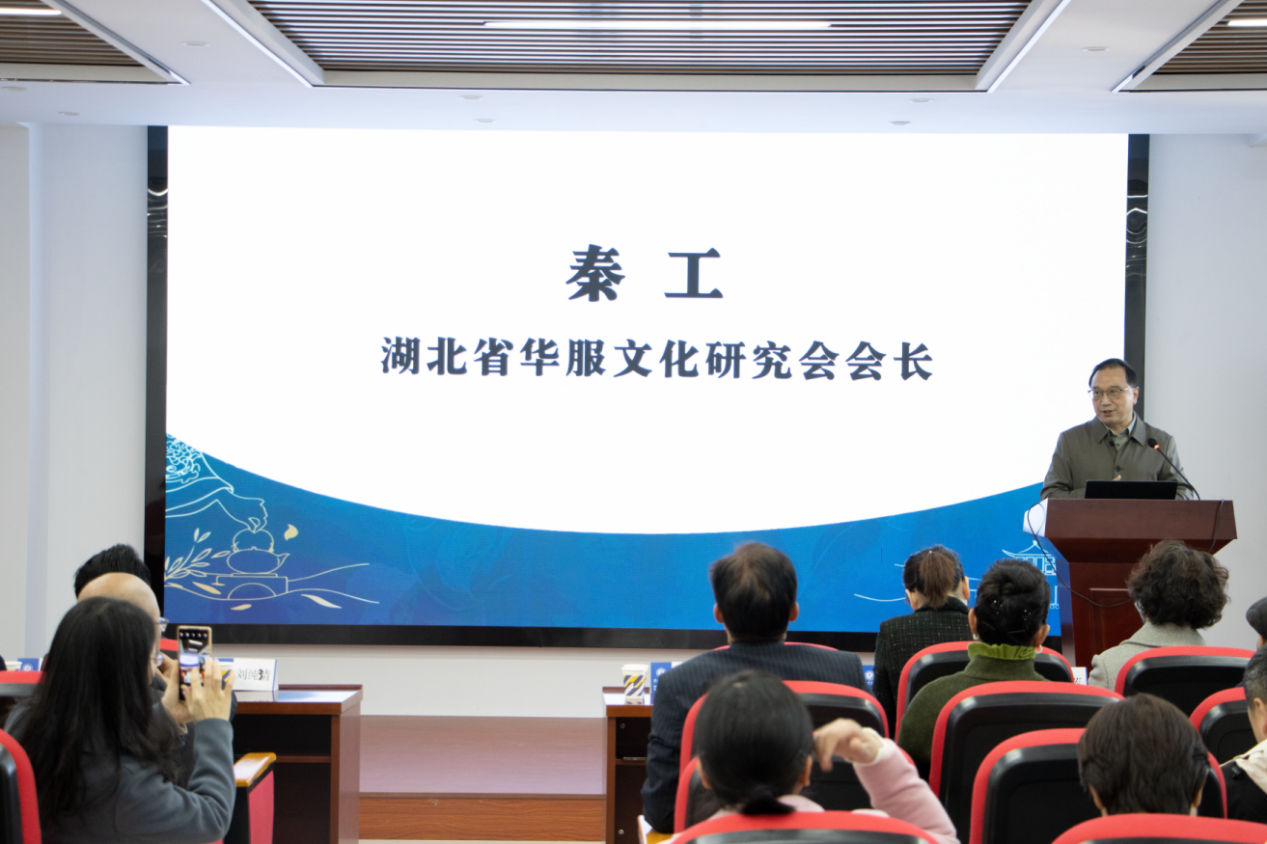 英国365集团院长郭彧教授、湖北省华服研究会会长秦工、湖北省社科联三级调研员祝金华出席研讨会并致辞。