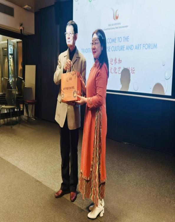 何岳球教授在论坛上发表题为《中国茶道与羊楼洞青砖茶》的主旨演讲。从赤壁羊楼洞青砖茶的历史脉络切入,阐述了青砖茶如何通过万里茶道走向欧亚大陆,成为连接东西方文明的重要纽带。演讲中,何教授介绍了青砖茶的制作工艺和药食同源的功效重点介绍了“和合天下”的茶道精神,让南太平洋的华侨华人和国际友人领略到湖北咸宁青砖茶的独特魅力她希望通过茶文化的传播与交流,促进中、新两国人民的相互理解和友好合作,为构建人类命运共同体贡献力量。