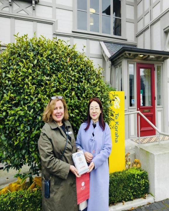 活动期间,代表团还考察了新西兰湖北经贸文化协会、怀马克里里图书馆等地,双方举行了一些友好的座谈与交流活动。何岳球教授向基督城市政府国际关系部、坎特伯雷大学孔子学院媛吉女中凯厄波伊高中等机构分别赠送了赤壁青砖茶咸宁桂花伴手礼坎特伯雷大学孔子学院也回赠了礼物
