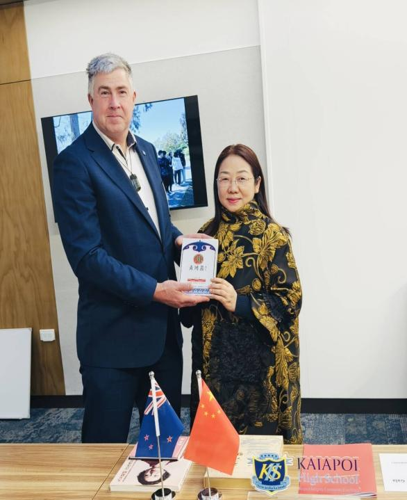 5月15日,代表团访问了怀马可里里市知名学校--凯厄波伊高中(Kaiapoi High School),与之签署了“传统文化合作与共建”协议,举行了“世界华服大会”新西兰凯厄波伊高中文化交流中心(怀马克里里)”挂牌仪式,该中心将作为新西兰南岛中华文化交流与推广基地,从线上线下的交流和体验中,达成中、新青少年文化的共识和互动。