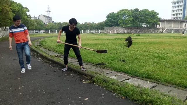 不抱怨自己紧握铁锹的手红肿起泡,沾染灰尘的眼干涩模糊,久蹲拔草的腰身也酸痛难耐,甚至晒伤脱皮,他们用实际行动践行着我院“艰苦奋斗、自力更生”的坚韧不拔的精神理念。