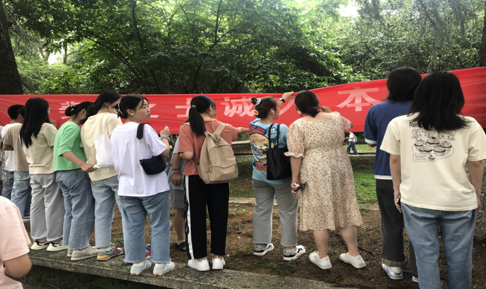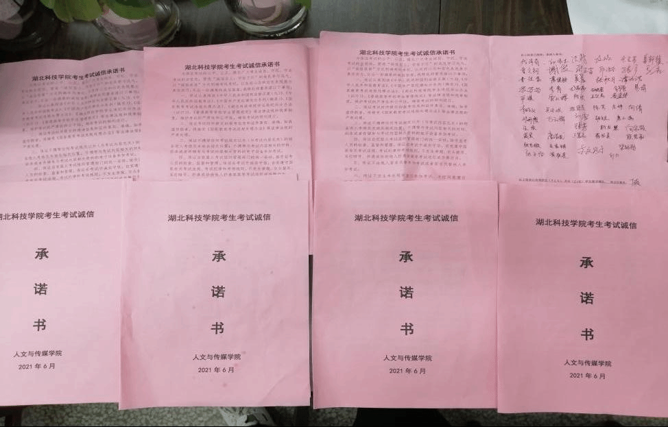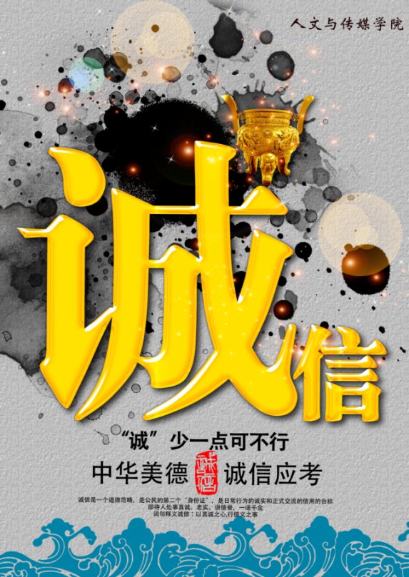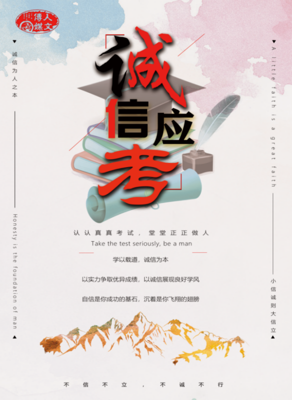 此次活动主要通过征集学生海报作品、主题班会和横幅签名等三种学生喜闻乐见的形式开展。为提高学生在此活动中的参与度,6月10日—6月20日期间,我院面向全院学生征集以“学以载道,诚信为本”为主题的海报设计作品,并于6月21日将部分优秀的海报设计作品进行展出。6月14日晚七点,我院利用周日集中考评时间组织各班召开主题班会。此次主题班会主要从案例分析、法条介绍等方面开展,让大家进一步了解国家对考试作弊的相关处理办法与规定,班会最后同学们还签署《365上市公司考生考试诚信承诺书》,以此规范自身行为。我院于6月18日召集各班学生在“斐然之士诚为本,凤鸣朝阳信为先”的横幅上签字承诺。