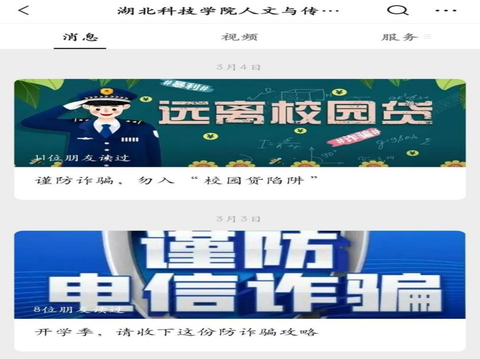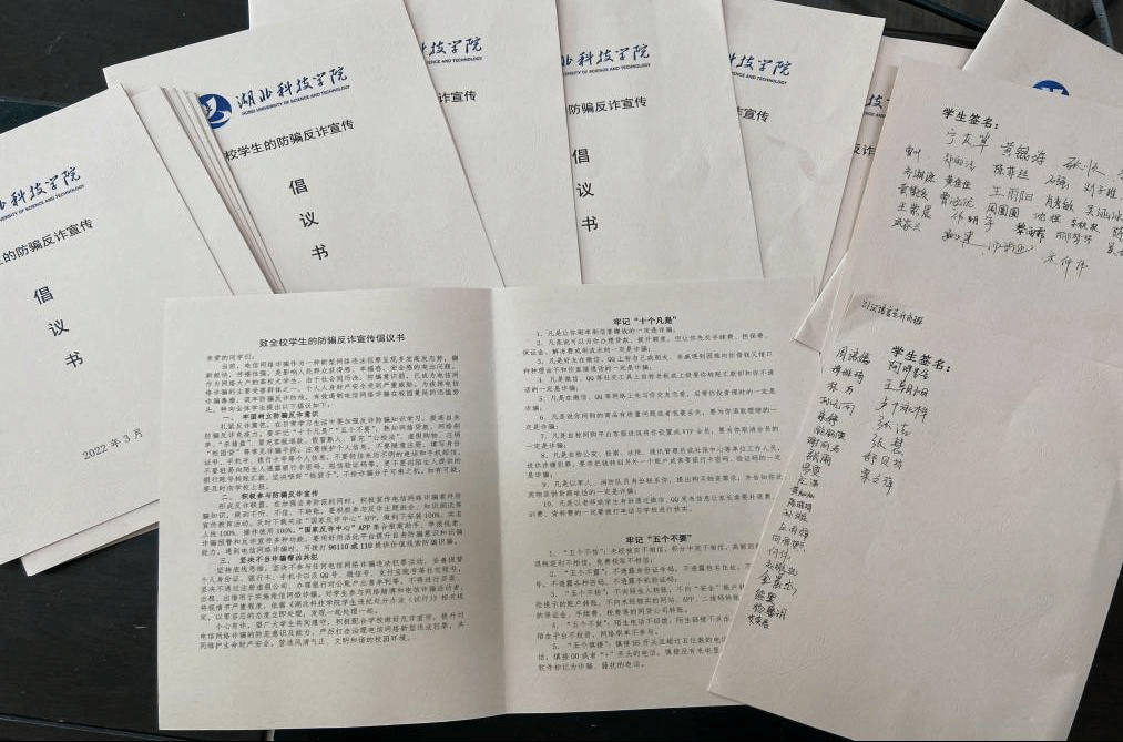3月3日-4日,我院在公众号上发布关于谨防电信诈骗和远离校园贷的两篇推文,以图文的形式警示同学们不要向陌生账户转账汇款,如需获取金融服务要走合法、正规的渠道。让同学们对何为电信诈骗及校园贷的行骗手段有了初步了解。3月13日,各班开展“严防电信诈骗,远离非法校园贷”的主题班会,以帮助同学们更深刻地认识电信诈骗。为切掉电信诈骗毒瘤,筑牢防骗反诈防线,有效遏制电信网络诈骗在校园蔓延的迅猛势头,各班长带领同学们学习防骗警示并提出建议:牢固树立防骗反诈意识,积极参与防骗反诈宣传,坚决不当诈骗帮凶共犯,以及牢记“十个凡是”,让电信诈骗无缝可钻。同时,同学们还签订了365上市公司防骗反诈倡议书。此外,我院举办了以“防范电信诈骗,远离非法校园贷”为主题的作品创作活动,并鼓励同学们采用多种创作形式,如视频剪辑、书法绘画等,极大提高了同学们的创作热情。
