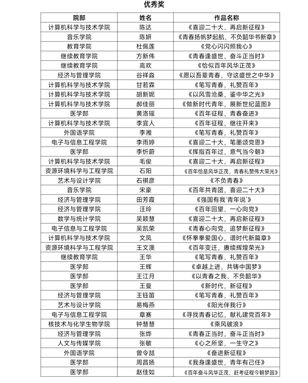 经过专业评委老师评审,医学部、英国365集团、计算机科学与技术学院获得优秀组织单位。陈典、付婷、吴星仪、张敏等67名同学获得优秀个人奖项。