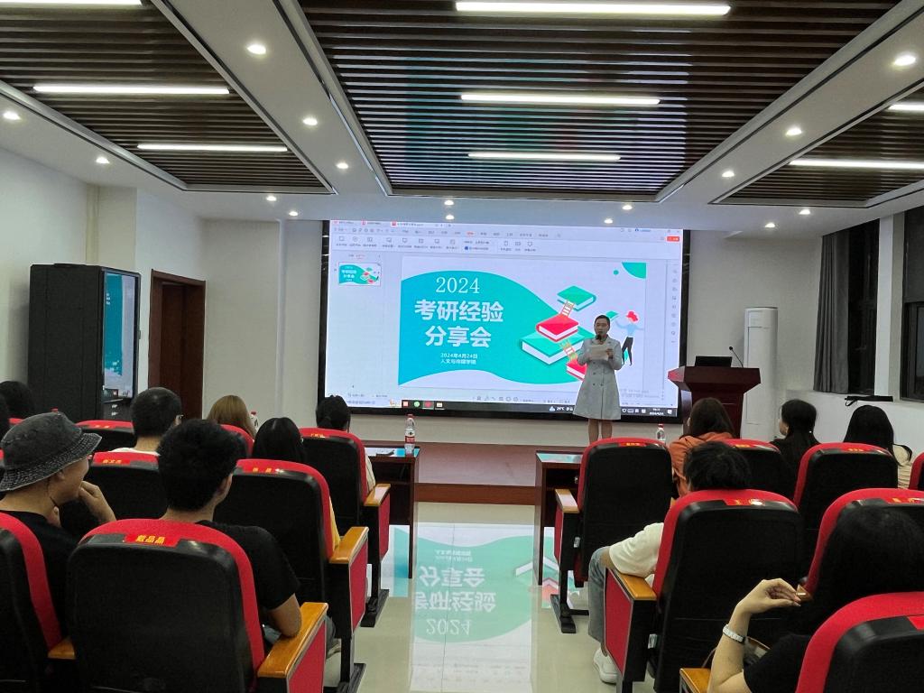 为了进一步加强同学们对研究生入学考试的认识,提高学生的考研热情,增强学生考研信心,明确考研目标,掌握相关考研技巧。4月24日晚,我院在揽胜楼1505举办“筑梦考研,扬帆起航”考研经验分享会。辅导员郭广明及2021级、2022级学生代表100余人参加活动。