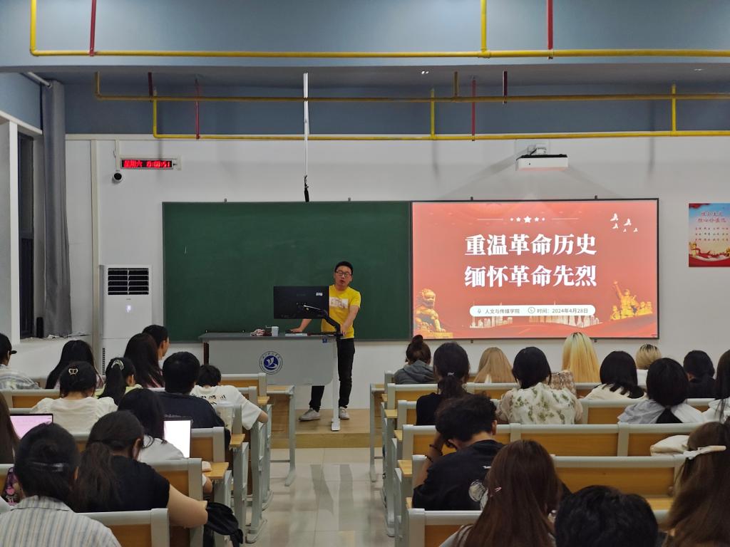 为深入学习贯彻习近平新时代中国特色社会主义思想,积极培育和践行社会主义核心价值观,通过追寻红色记忆,讲述红色故事,引导学生厚植爱党爱国爱社会主义情怀,坚定理想信念,争做堪当民族复兴重任的时代新人。4月27日晚,我院各班在集中考评教室召开了“重温革命历史,缅怀革命先烈”主题班会,班会由各班班长主持,全体学生参加。