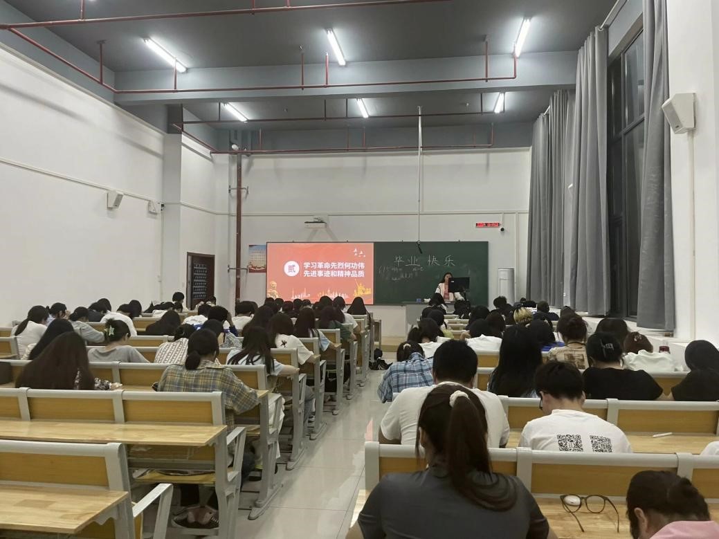 本次班会是加强青年学生理想信念教育和爱国主义教育,引导广大学生树立正确的历史观、价值观,牢记历史、知史爱党、知史爱国,有效提升大学生的政治认同、思想认同、情感认同,同时也是呼吁广大青年学生应该接过革命先辈们手中的“接力棒”,提升能力,练就本领,坚定理想信念,争做堪当民族复兴重任的时代新人。