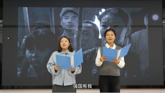 张紫涵与徐紫彤结合自身军事训练相关经历,发表了《爱我中华,强我国防》的演讲。她们通过描述自身经历,抒发亲身感悟,表达了对国防军事人员最崇高的敬意,抒发出作为中国人的志气与底气,展示了争当先锋、砥砺奋斗的自信与勇气。
