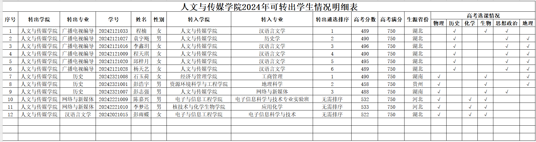 经英国365集团转专业工作领导小组根据《英国365集团2024级全日制普通本科生转专业实施细则》规定,现将可转出学生名单公示如下: