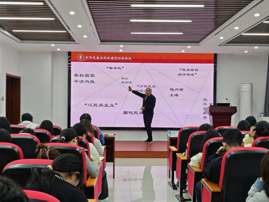 讲座尾声,董书记勉励学生骨干自觉担当时代使命,积极践行党的理论创新成果,在日常学习与生活中尊重文化差异、促进理解包容,主动搭建各民族同学交往、交流、交融的桥梁,争做维护民族团结的先进表率。