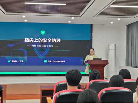 周菡以“别让你的‘小习惯’,成为网络安全的‘大漏洞’”为题,通过二手交易被骗、钓鱼邮件等真实校园案例,剖析了“贪便宜、嫌麻烦、信平台”等常见心理,提醒同学们守住“钱袋子”“账号密码”“判断力”“责任心”,做到“不点、不转、不信、不传”。