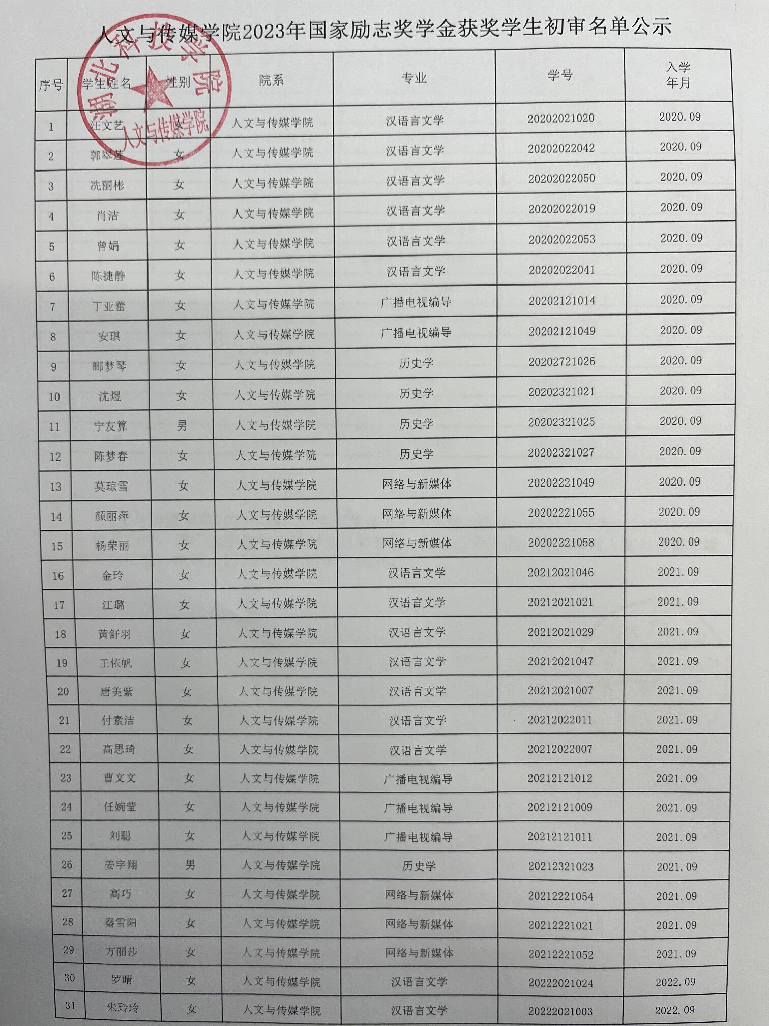 英国365集团2023年国家励志奖学金获奖学生初审名单公示