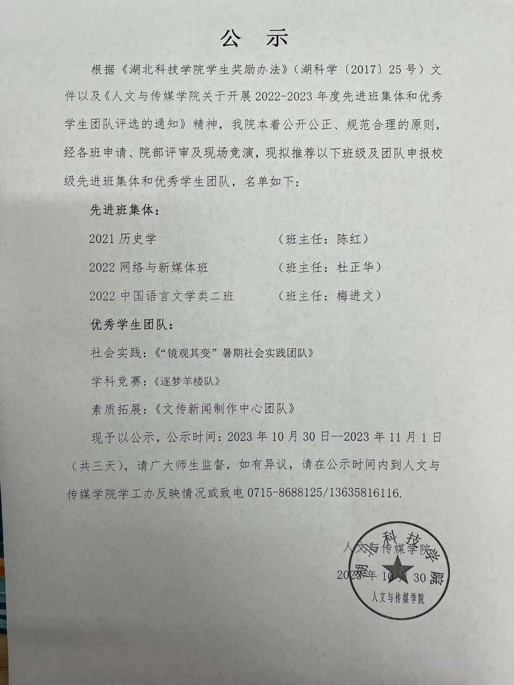 英国365集团2022-2023学年先进班集体和优秀学生团队拟推荐名单公示