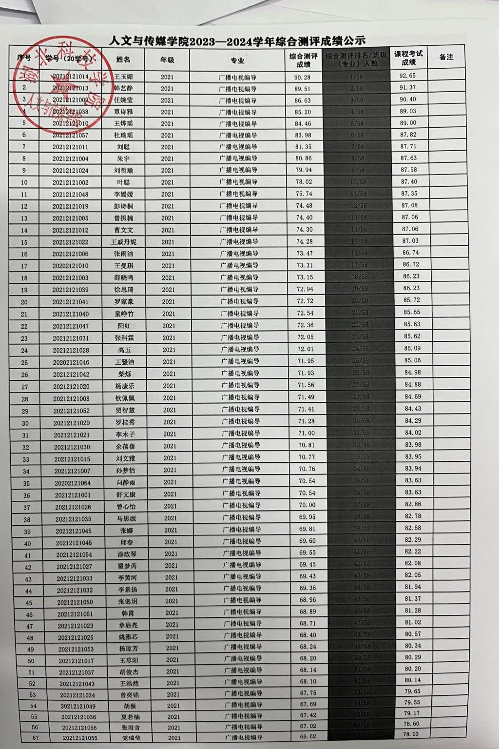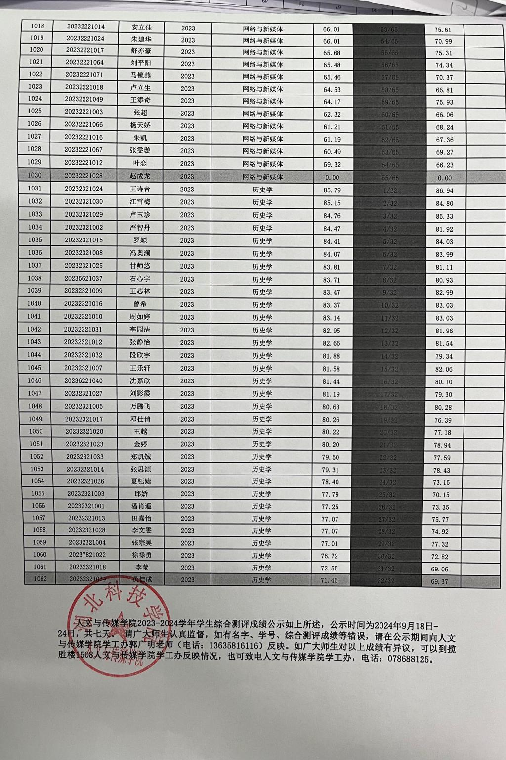 英国365集团2023-2024学年学生综合测评成绩公示