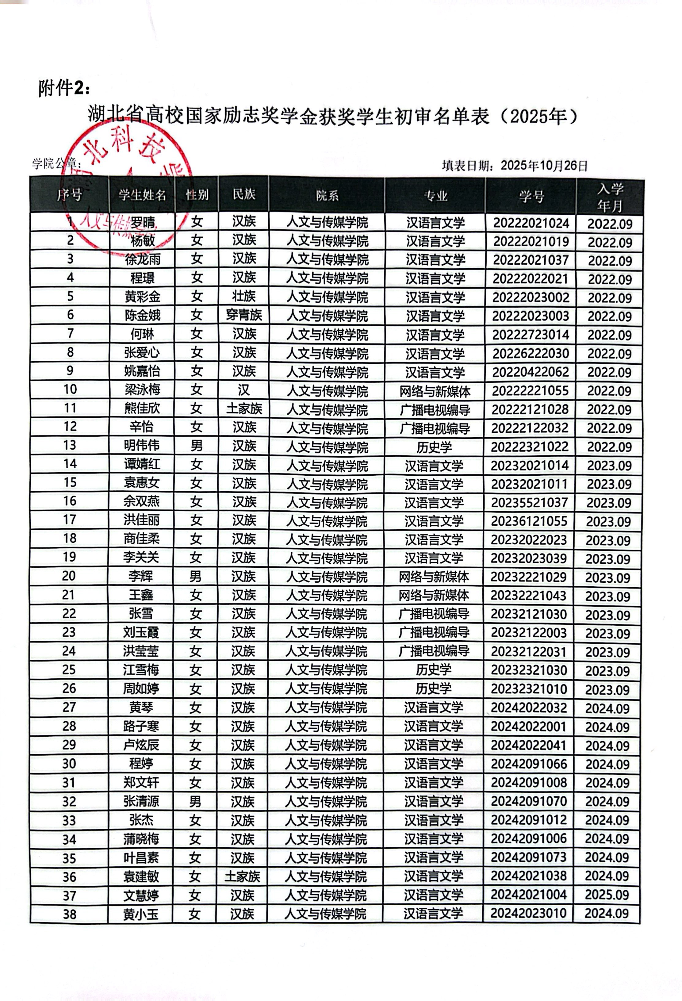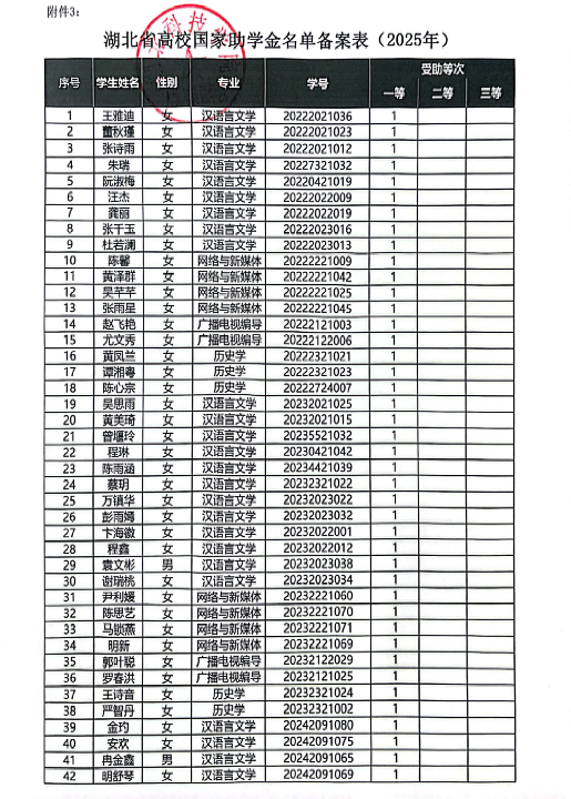 经过各班评议,现将英国365集团2025年国家励志奖学金和国家助学金评定定结果进行公示,公示时间:2025年11月5——2025年11月7日,请广大师生监督。