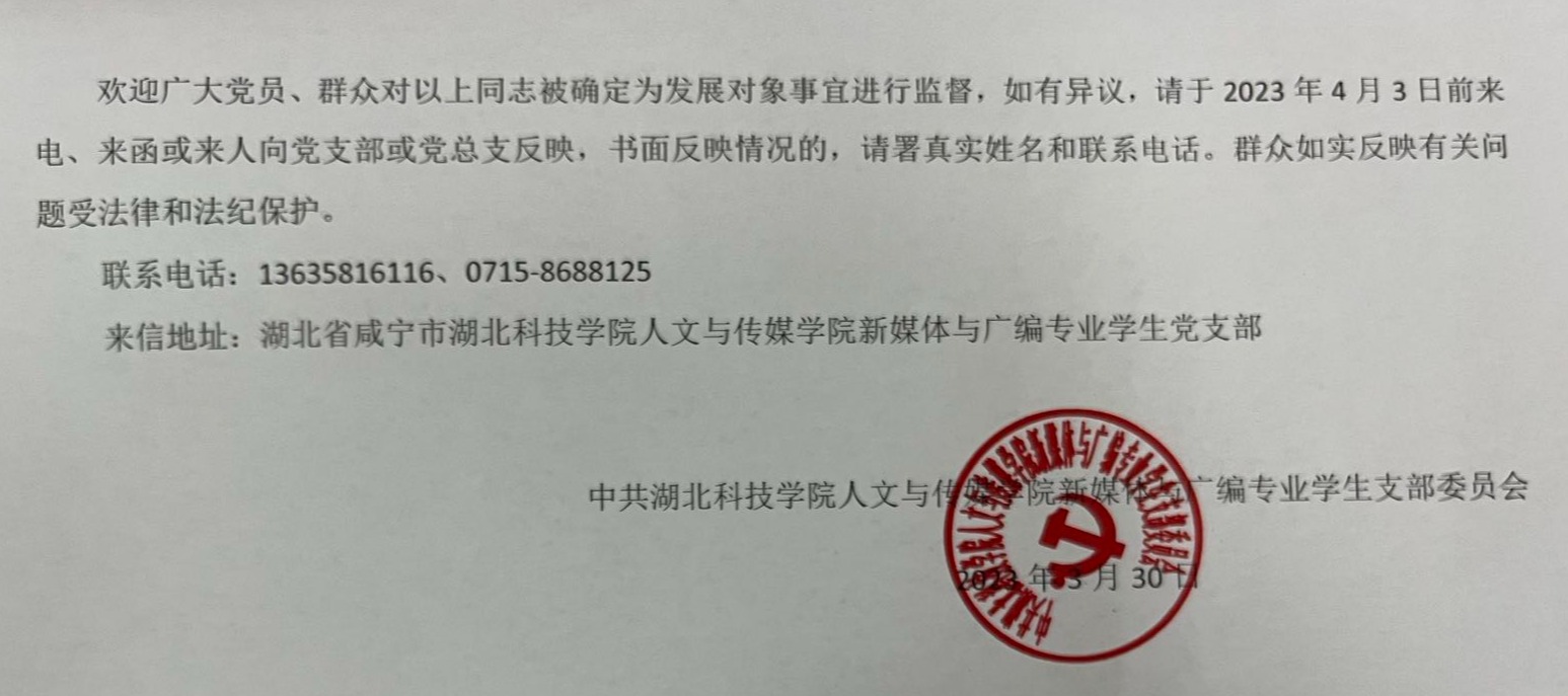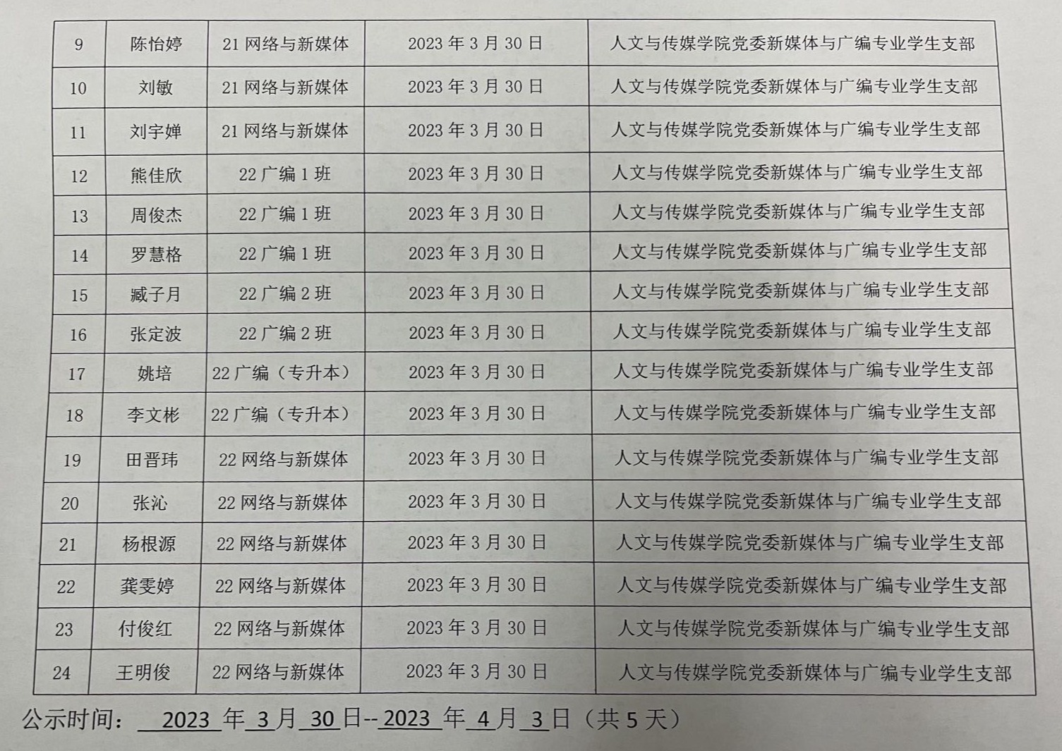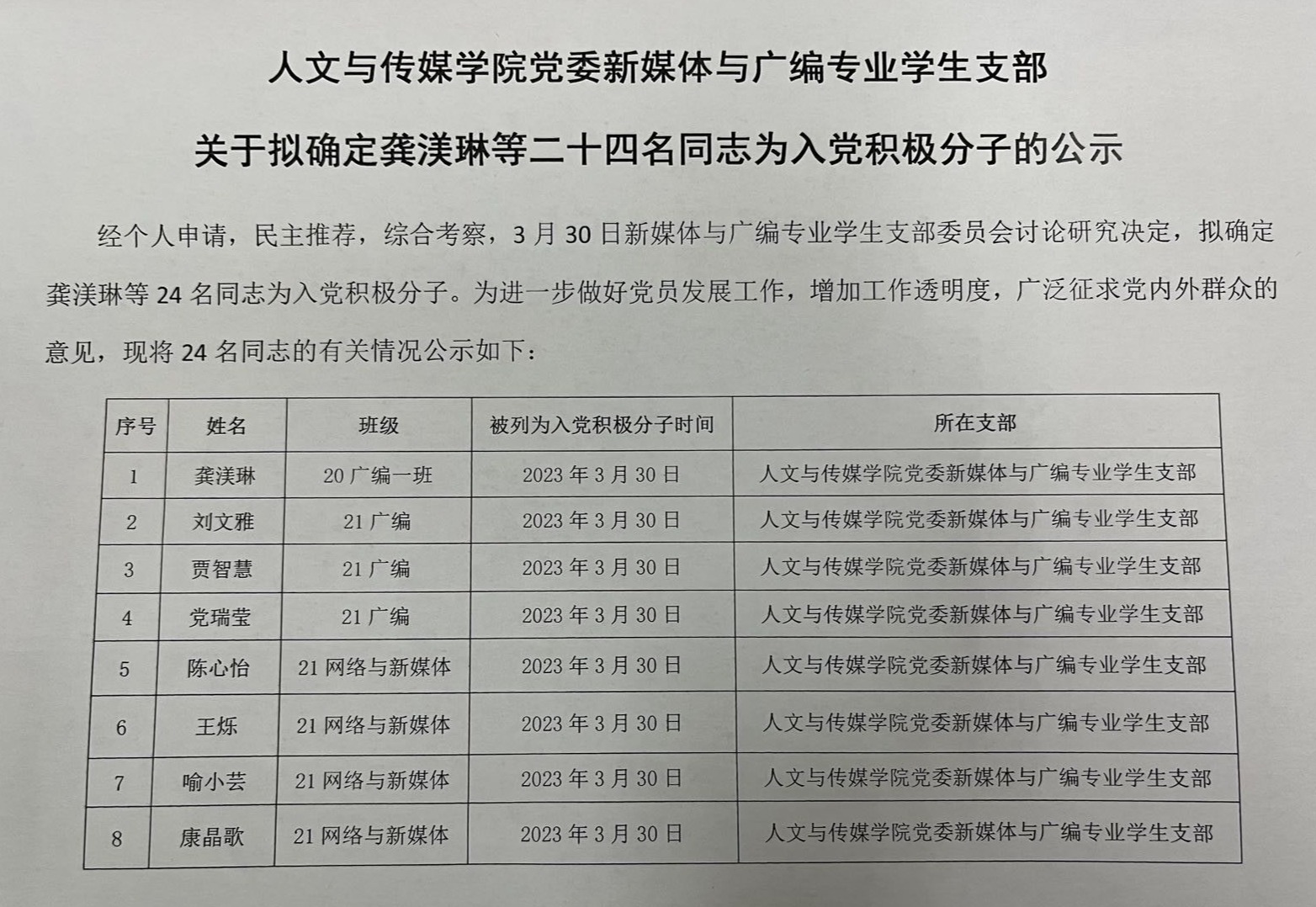 英国365集团党委新媒体与广编专业学生支部关于拟确定龚渼琳等二十四名同志为入党积极分子的公示