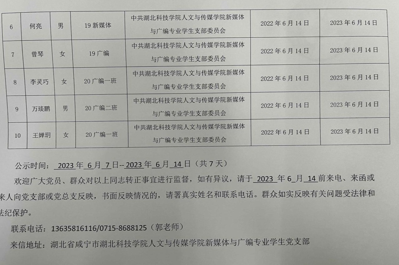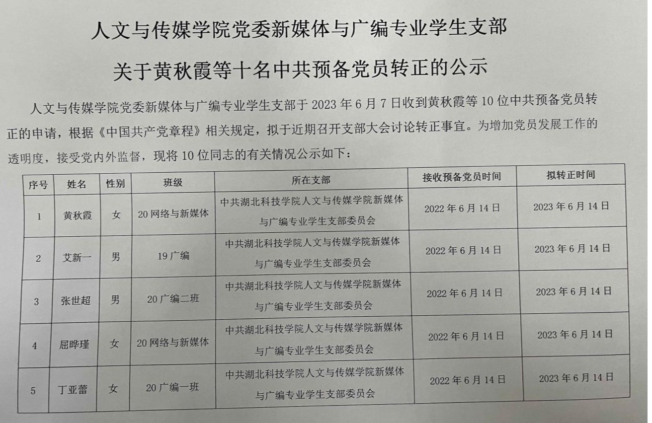 英国365集团党委新媒体与广编专业学生支部中共预备党员转正公示