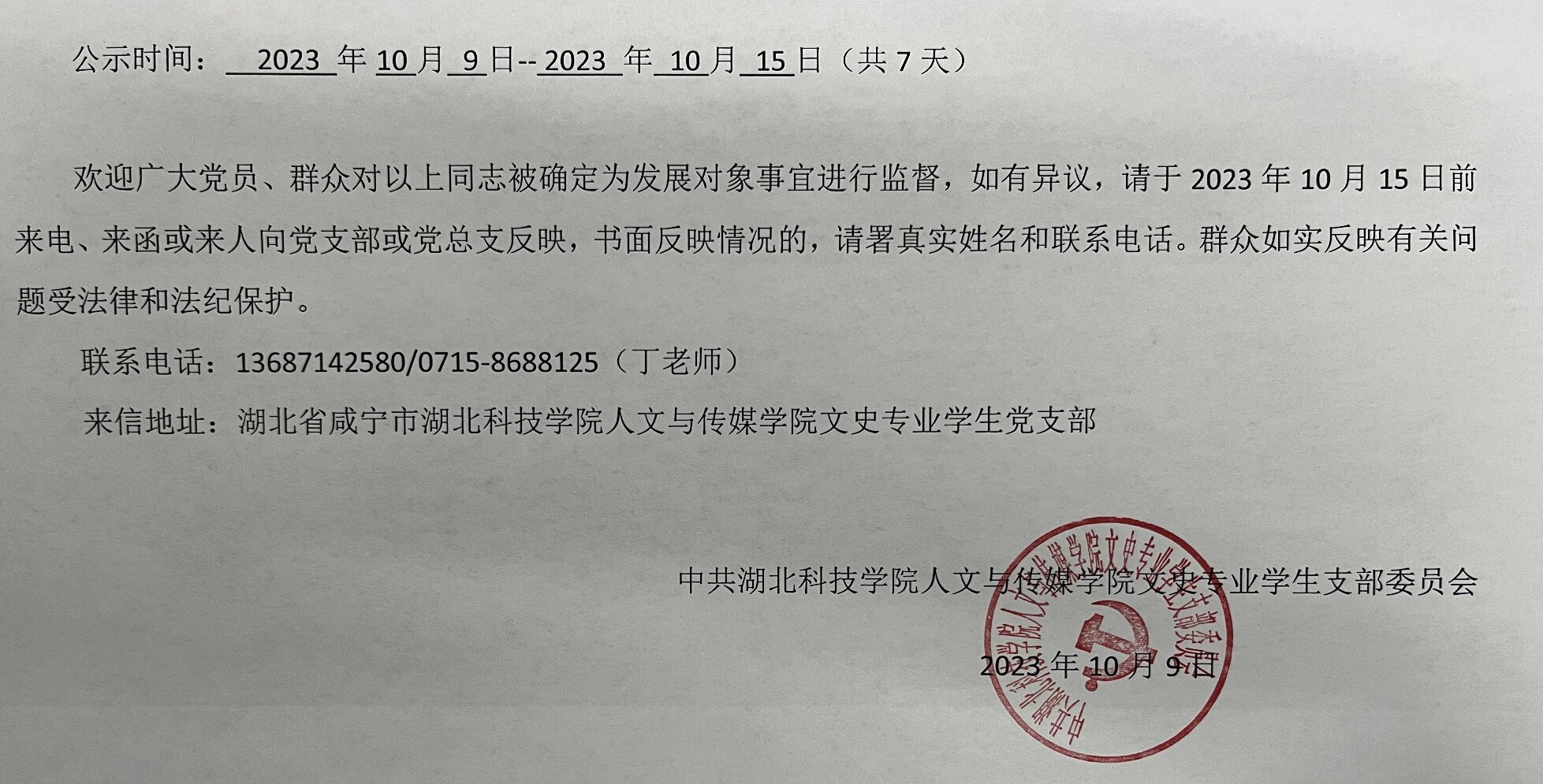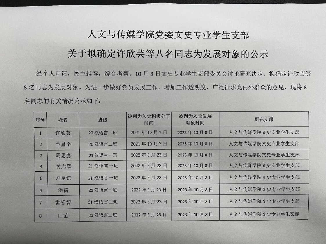 英国365集团党委文史专业学生支部关于拟确定许欣芸等八名同志为发展对象的公示