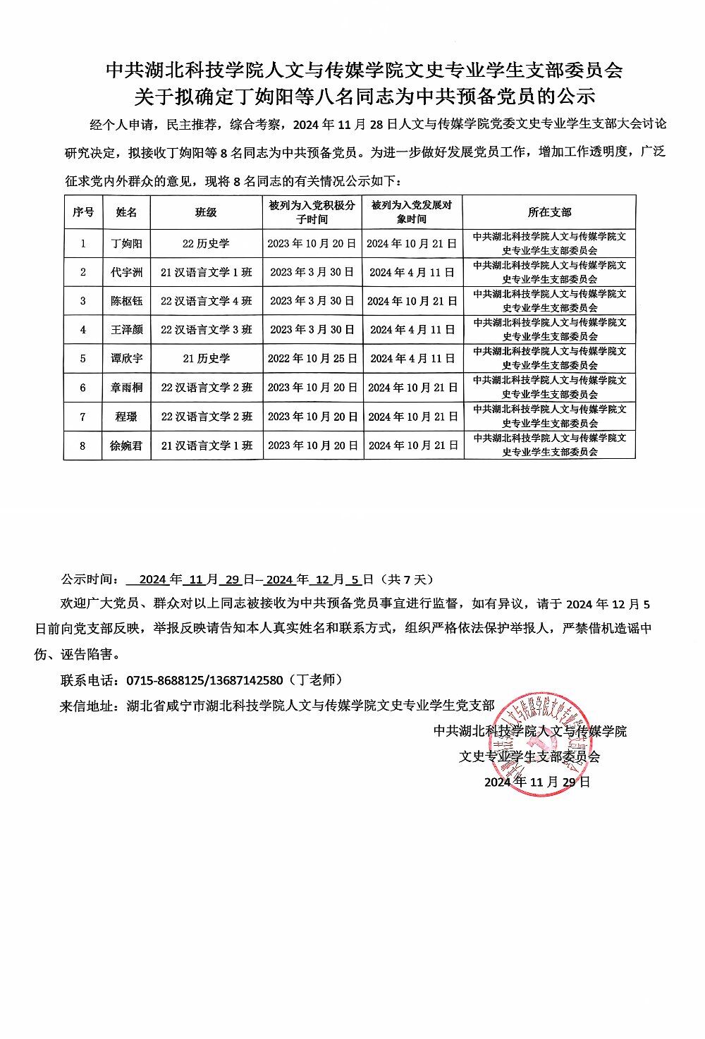 英国365集团党委文史专业学生支部关于拟确定丁姁阳等八名同志为中共预备党员的公示