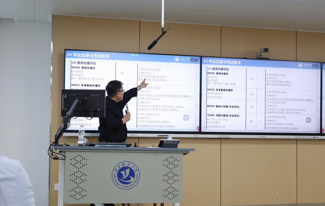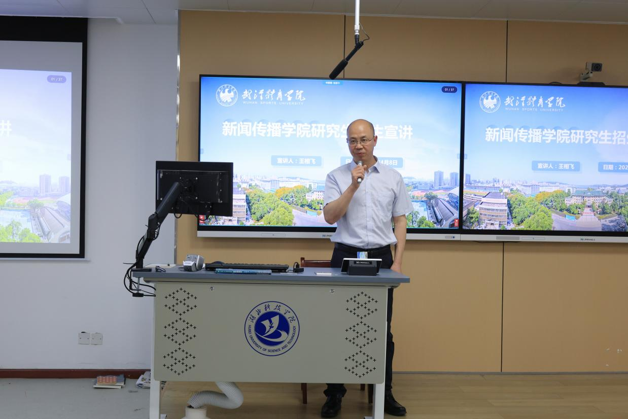 会上,王相飞教授介绍了武汉体育学院新闻传播学院的硕士研究生招生政策,重点解读了其跨学科培养的特色优势。据悉,作为湖北省传媒教育领域的重要合作项目,此次交流标志着两校战略合作迈入新阶段。该学院在招生中充分考虑学生多样性,对英语成绩要求相对灵活,部分专业可参照体育类专业的英语分数线(通常低于普通专业国家线),为英语薄弱但专业能力突出的学生提供了深造机会。这一政策引起在场学生的广泛关注。