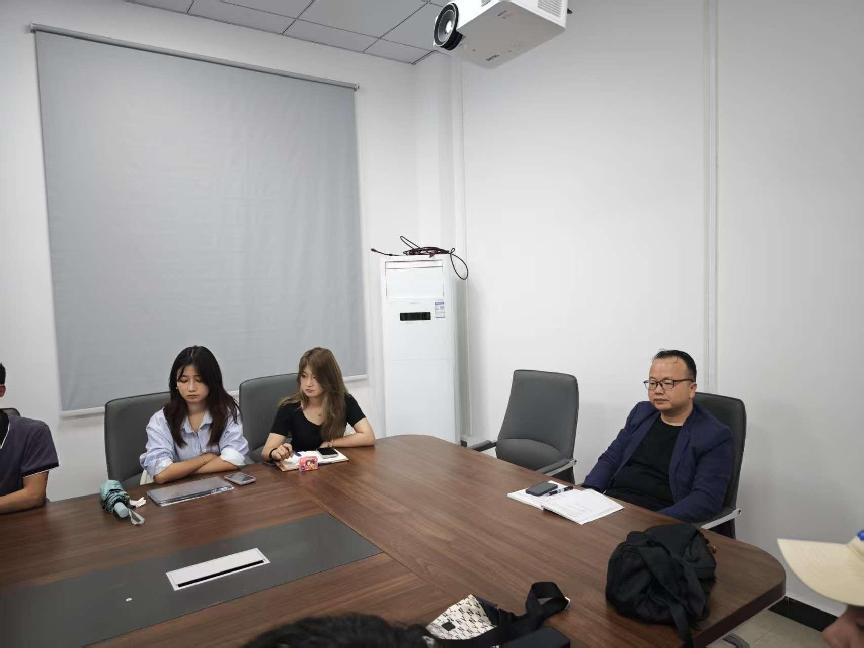 随后,同学们与拾米文化传媒有限公司负责人:体育学院的21级学生王龙霄进行交流。王龙霄热情接待了师生一行,并带领大家参观了公司的办公环境、创意工作室和项目展示区。在交流座谈会上,他分享了公司的发展历程、业务范围以及在短视频创作、品牌营销等领域的成功案例。同学们积极提问,就内容创作、市场需求、职业发展等问题与其公司成员展开了热烈讨论。公司的专业人士也结合自身经验,为同学们提供了宝贵的建议和指导。