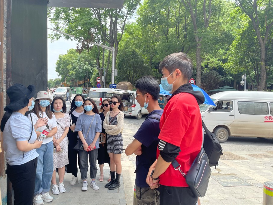 该公司新媒体项目运营工作人员袁新怡带领学生参观了昙华林建设项目,给学生们介绍当前规划。袁新怡介绍到,“昙华林作为武汉的红色文化代表地方之一,承载着许多红色记忆,因此将昙华林打造成武汉网红打卡地,宣传其红色文化有着深远的意义。”