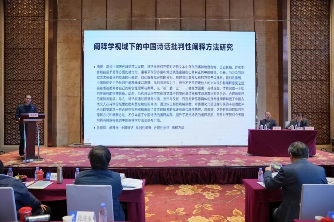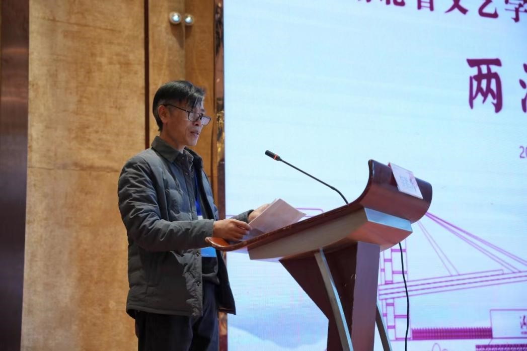 阎伟教授主持下半场大会主题发言。湘潭大学蔡熙教授作了以“德勒兹诗学中的中国元素”的主题报告。江汉大学庄桂成教授分享了关于中国式现代化与新时代文艺话语关键词的观点。湖北民族大学柳倩月教授以中国民间批评史的话语流变及基本问题域为主题作了报告。中南财经政法大学张金梅教授就《周易》“十翼”的批评范式与批评方法分享了她的观点。最后评议人高文强教授对以上发言进行了评议。