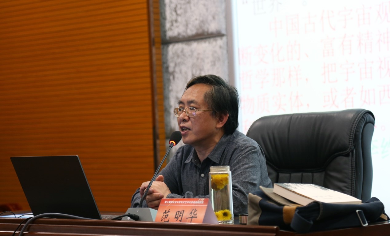 会上,范明华教授从哲学基础与精神旨归两个方面,深入的剖析了中国美学,就宇宙理论、人心理论对中国美学的哲学基础进行讲解,并从尊“生”、贵“和”、崇“自然”、重“心”和尚“乐”五个方面分析其精神旨归。范明华教授将中国美学的基本特质和精神指向归结为尊重生命、崇尚和谐、倡导自然、重视内心体验、追求精神境界、向往人生快乐。